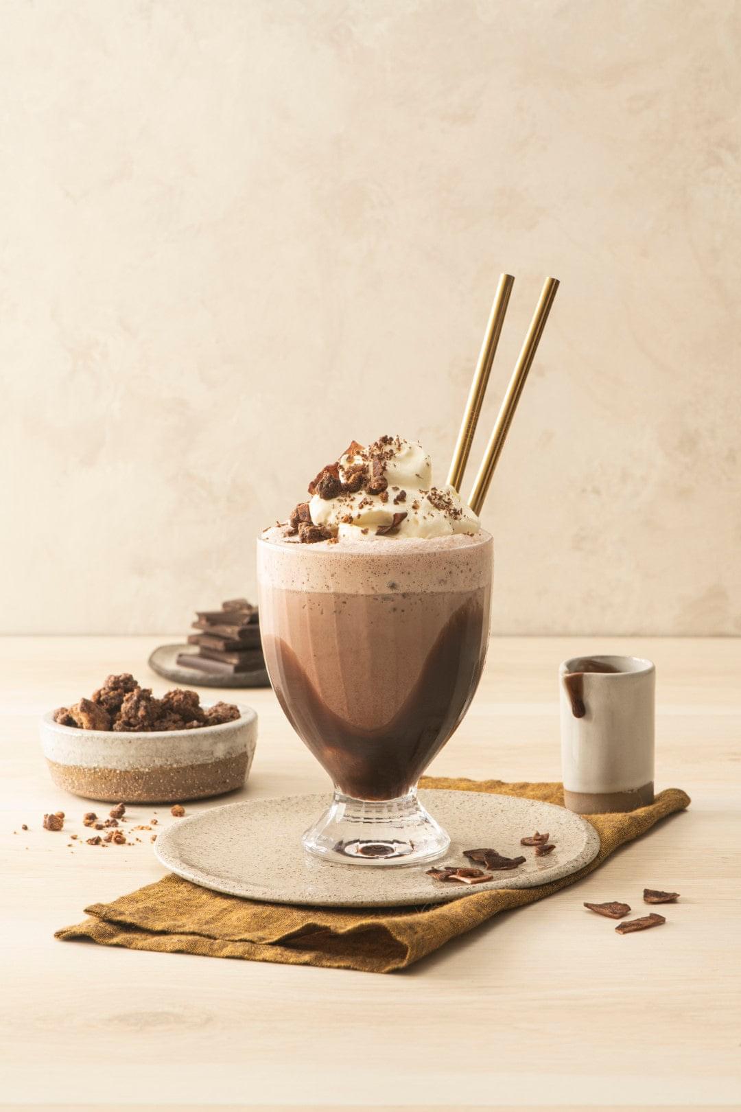 The Decadent Drinking Chocolate is a mid range 21% Cocoa blend suitable for hot, cold or iced drinks. This extremely popular blend is versatile across frappes and coffee based drinks.